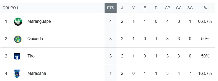 Se o Maracanã vencer, também não pode superar o Maranguape em saldo ou número de gols marcados.