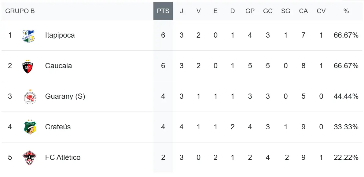 O Crateús também tem 4 pontos, mas um jogo a mais que o Cacique do Vale.